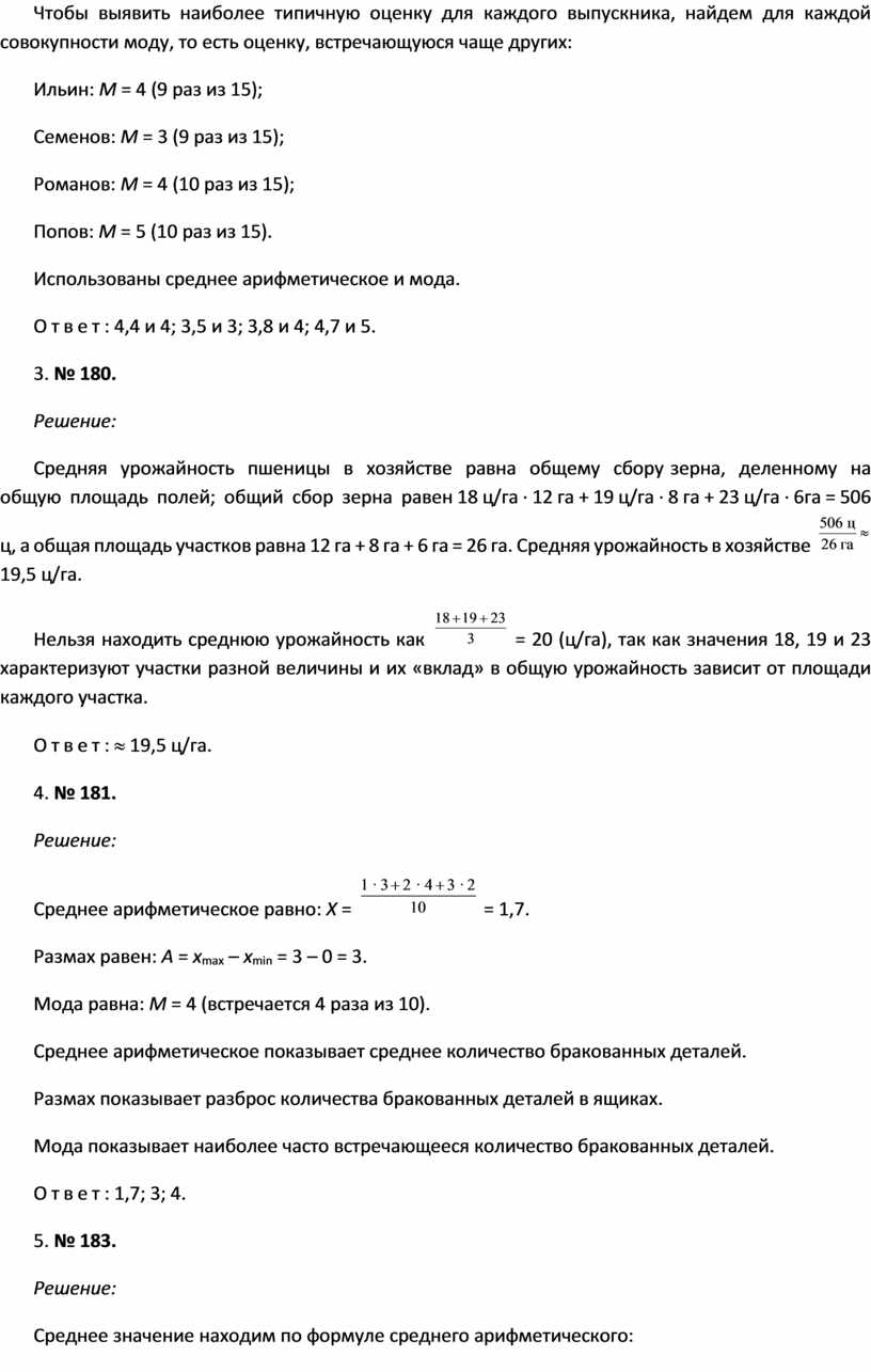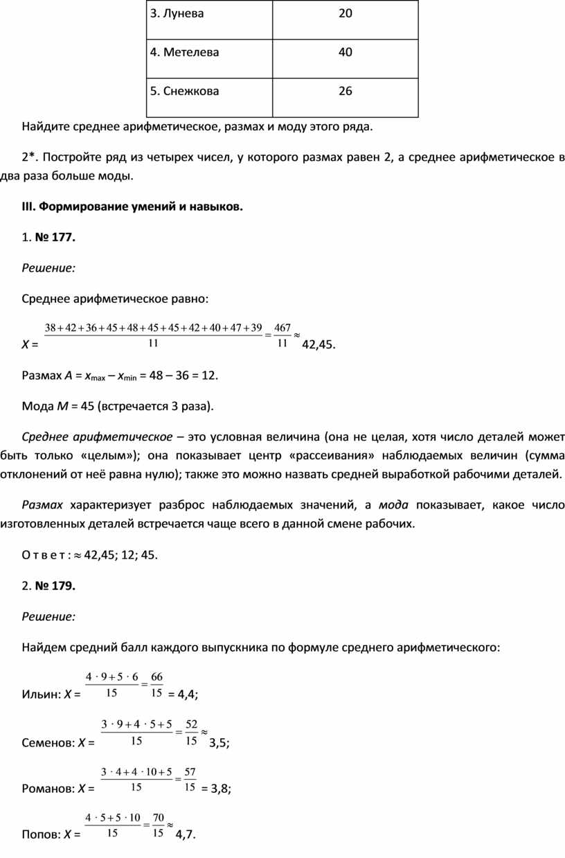 Цель: продолжить формировать умения находить среднестатистические характеристики ряда (среднее арифметическое, размах, мода) при решении различных задач.