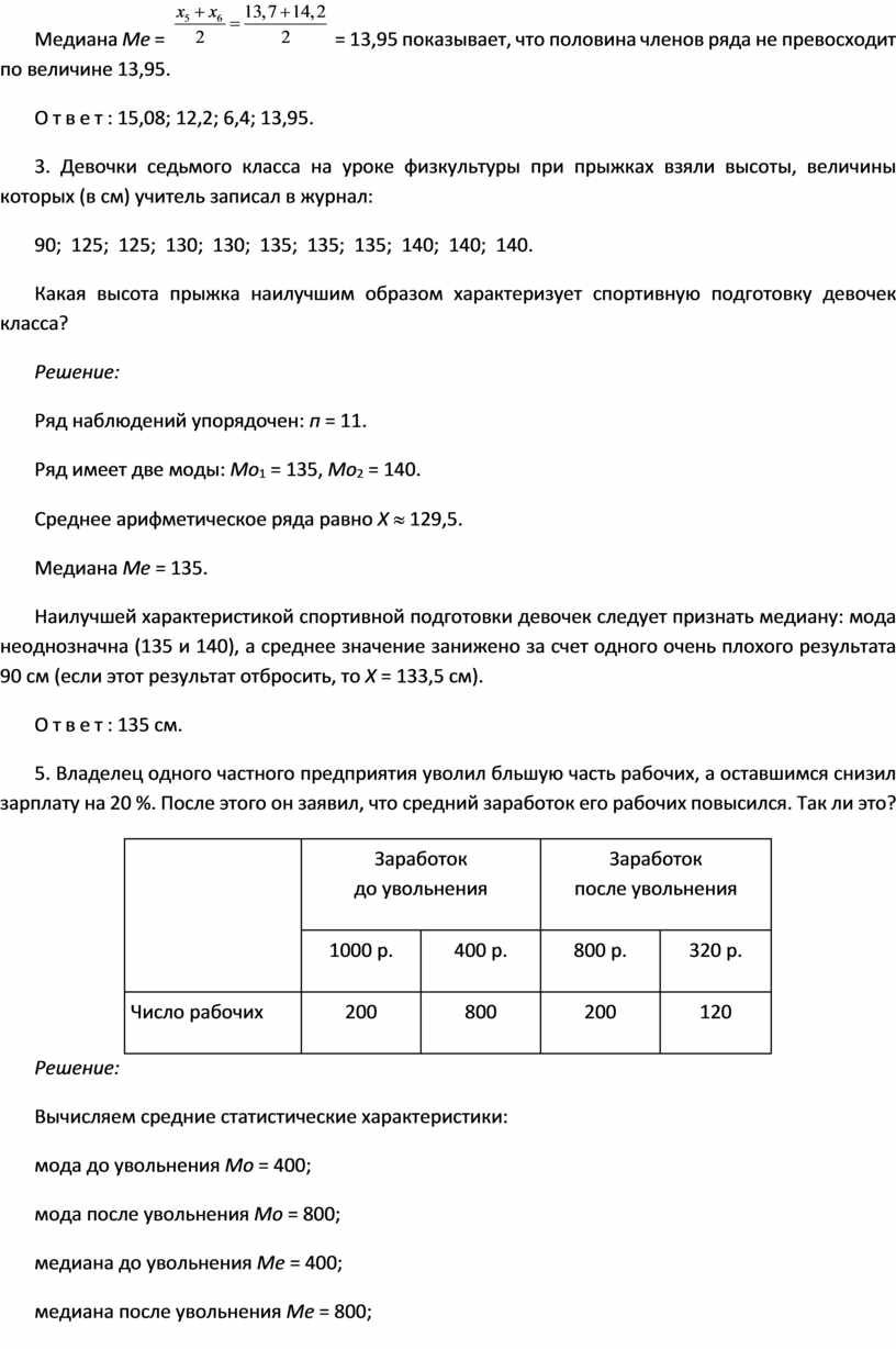 5. Владелец одного частного предприятия уволил бльшую часть рабочих, а оставшимся снизил зарплату на 20 %. После этого он заявил, что средний заработок его рабочих повысился. Так ли это?
