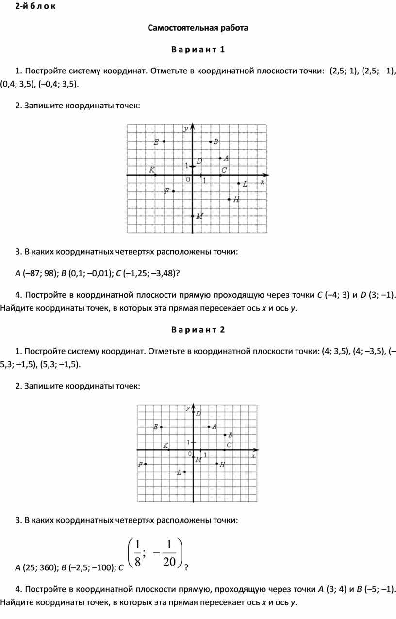 Второй блок носит повторительный характер и направлен на актуализацию знаний по теме «Построение точек в координатной плоскости».