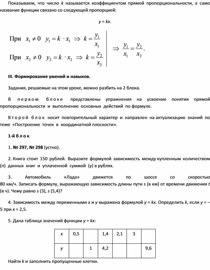 В первом блоке представлены упражнения на усвоение понятия прямой пропорциональности и выполнение основных действий по формуле.
