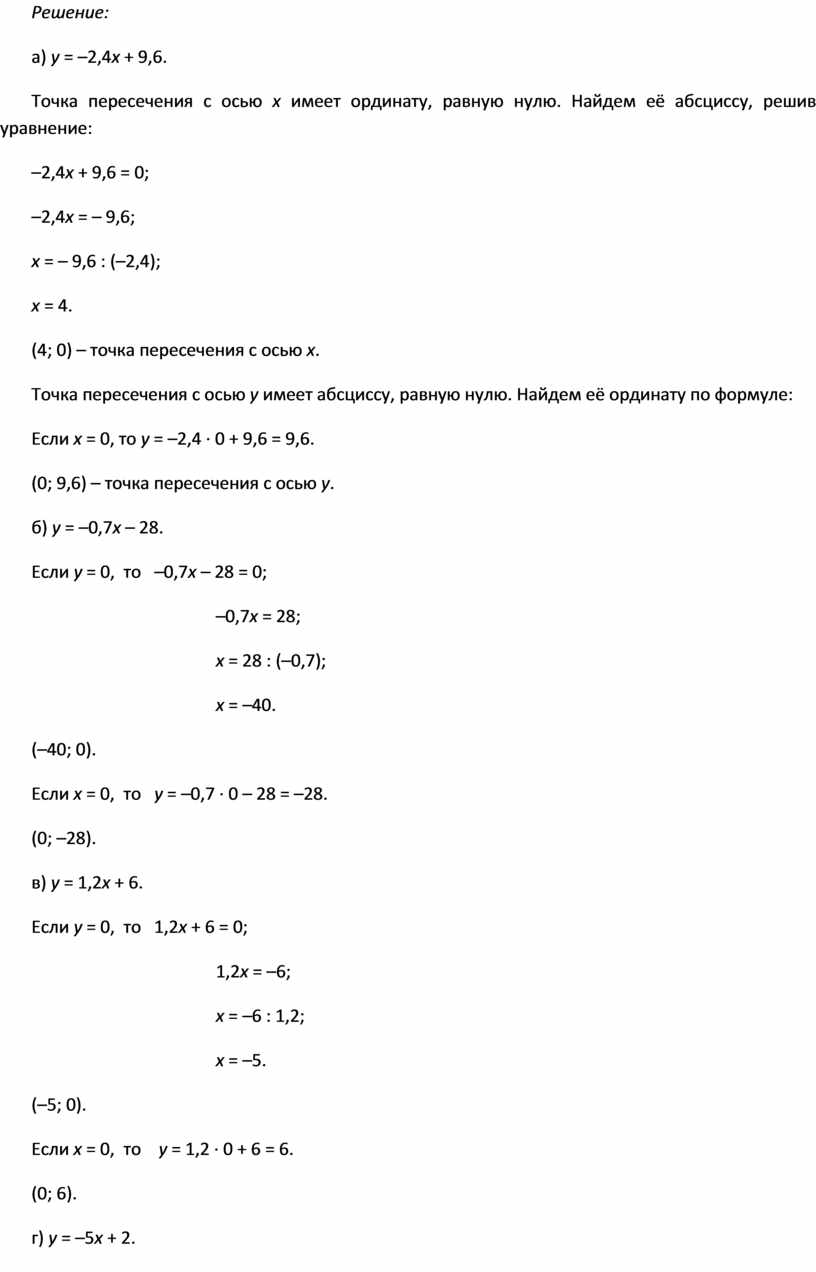 Если х = 0, то у = –2,4 · 0 + 9,6 = 9,6.