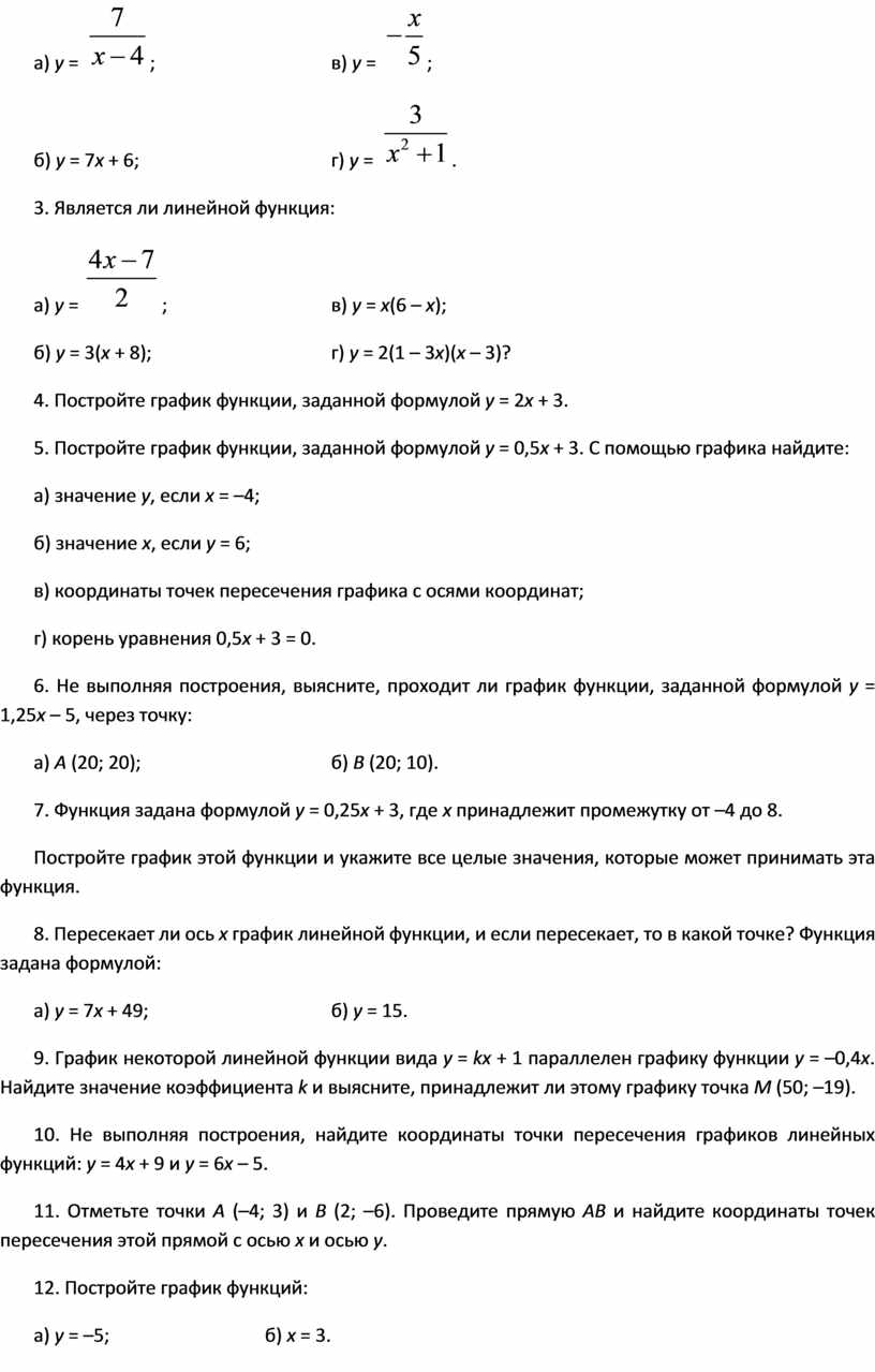 6. Не выполняя построения, выясните, проходит ли график функции, заданной формулой у = 1,25х – 5, через точку: