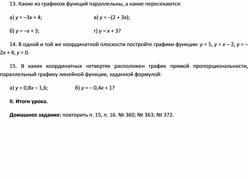 13. Какие из графиков функций параллельны, а какие пересекаются: