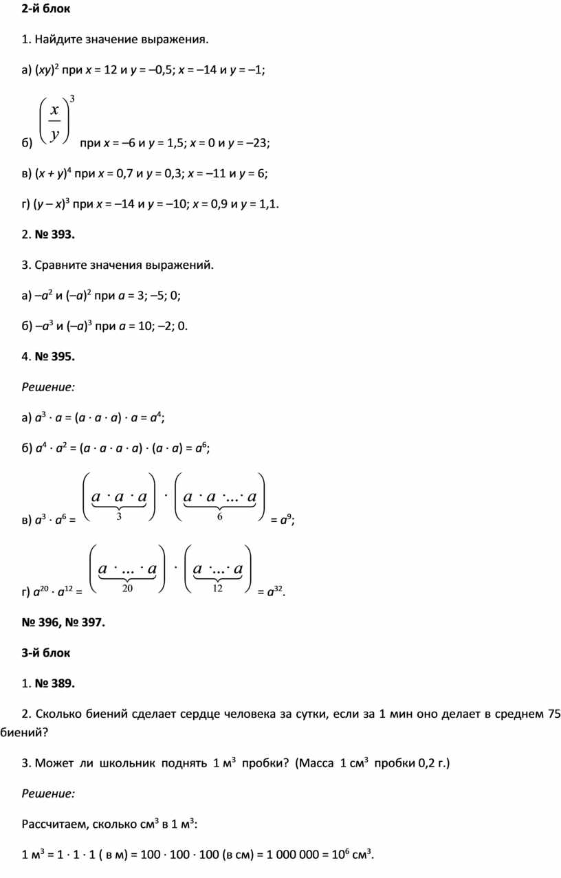 – Каков порядок действий при нахождении числового и буквенного выражения, содержащего степень?
