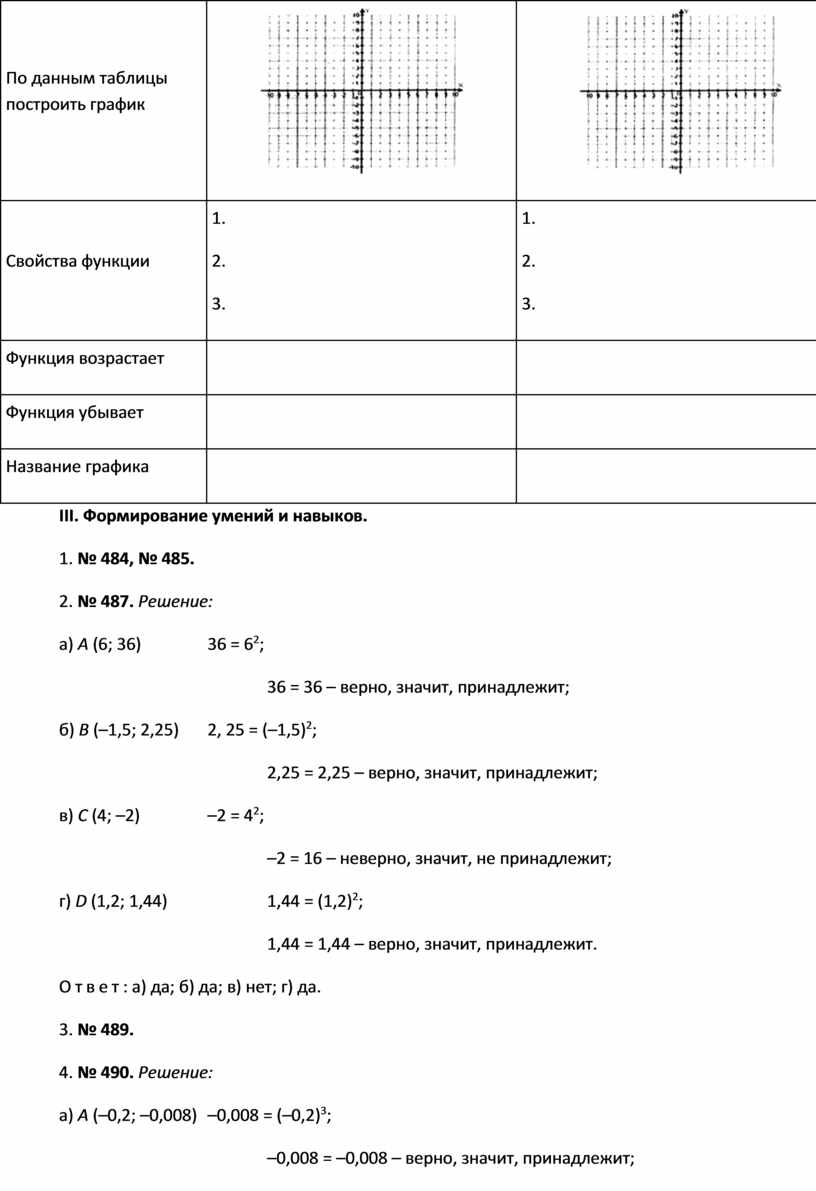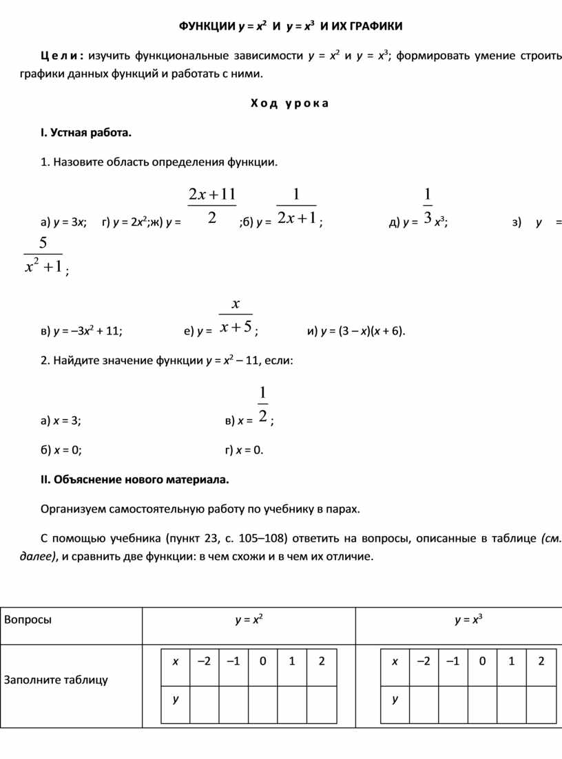 Цели: изучить функциональные зависимости y = x2 и у = х3; формировать умение строить графики данных функций и работать с ними.