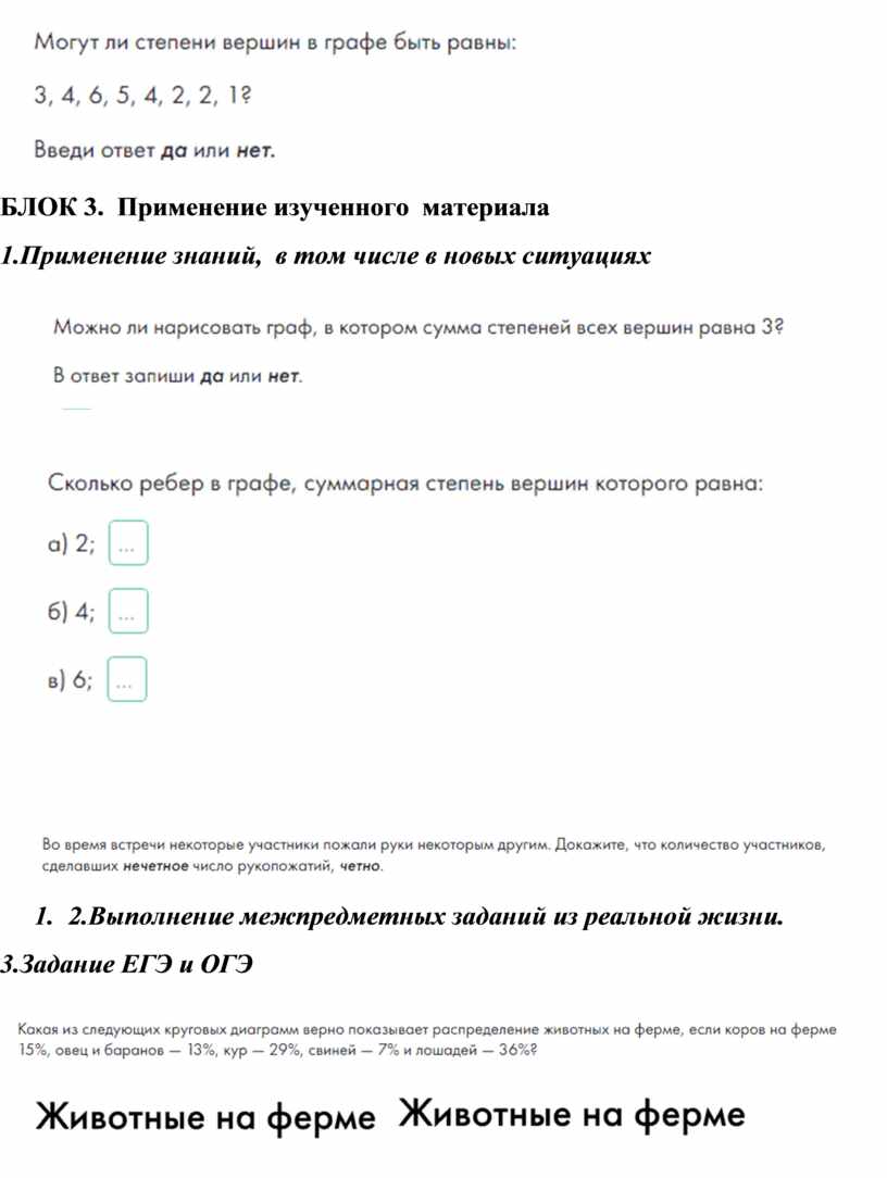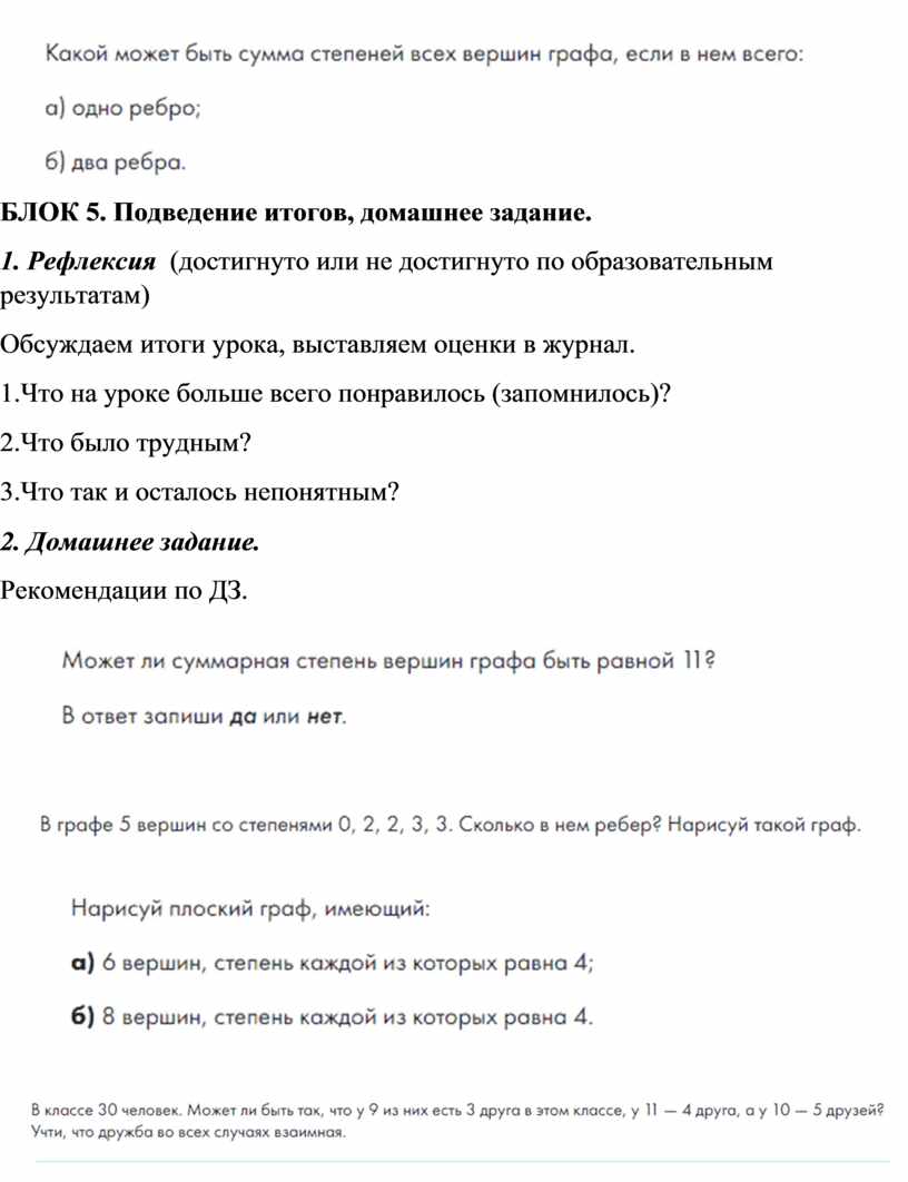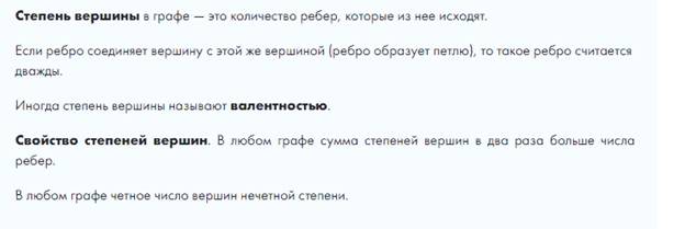 Тема: Степень (валентность) вершины. Число рёбер и суммарная степень вершин. Цепь и цикл.