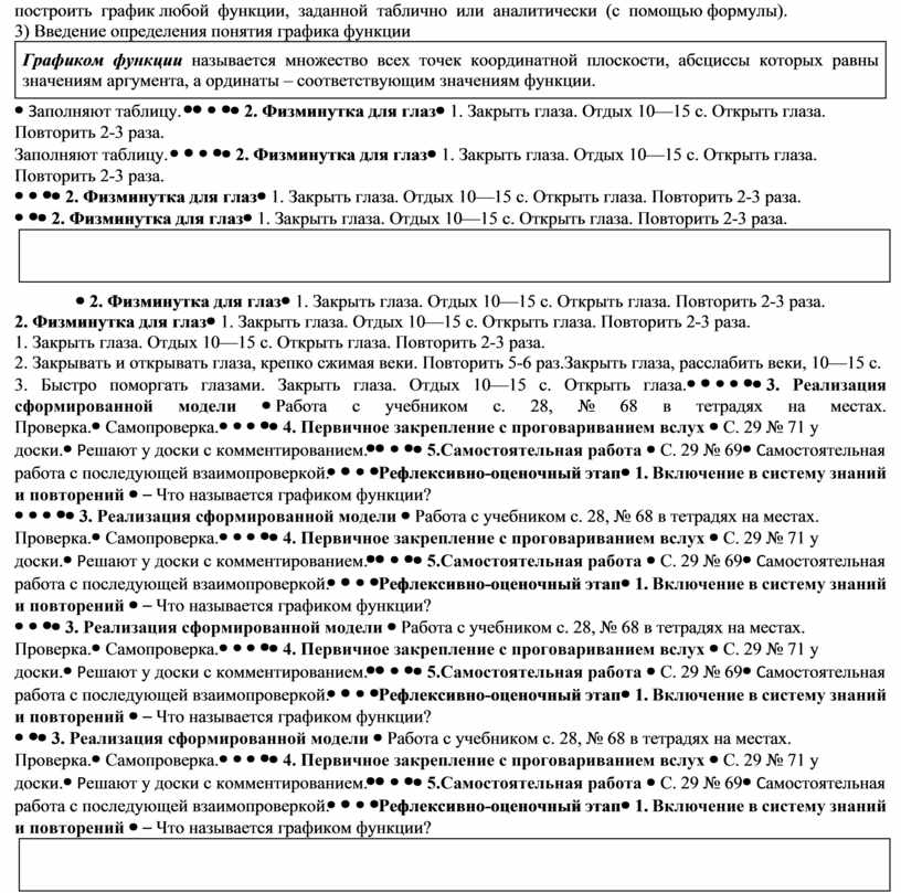 Построить график, соединив эти точки плавной линией. Необходимо сделать вывод: по точкам можно построить график любой функции, заданной таблично или аналитически (с помощью формулы). 3) введение определения понятия графика функции