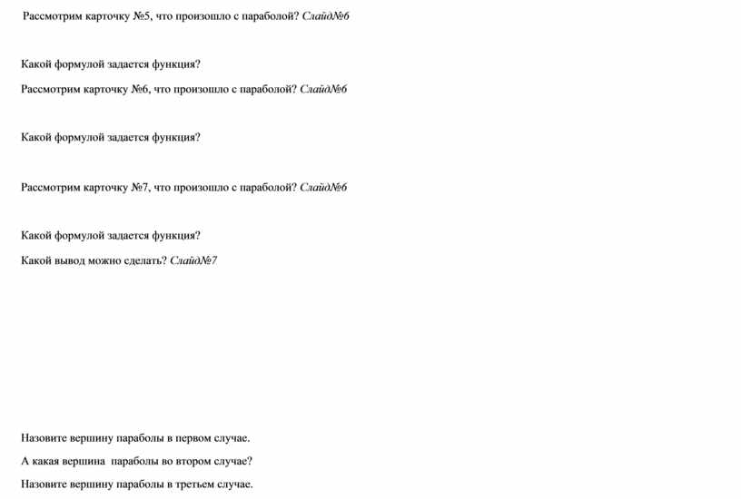 Рассмотрим карточку №7, что произошло с параболой? Слайд№6