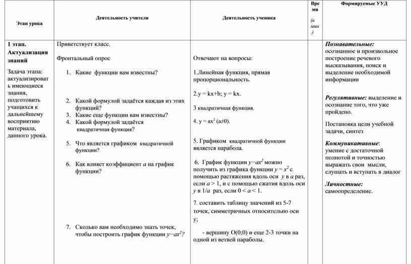 Знать: · алгоритм построения графиков функций: у = ах2 + у0 , y = a(x – х0)2 и у = а (х-х0)2 + у0; · как определяется координаты вершины параболы. Уметь: · строить графики функций: у = ах2 + у0 , y = a(x – х0)2 и у = а (х-х0)2 + у0; · определять координаты вершины параболы. |