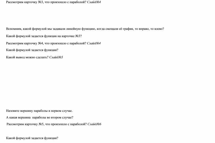 Какой формулой задается функция? Рассмотрим карточку №6, что произошло с параболой? Слайд№6