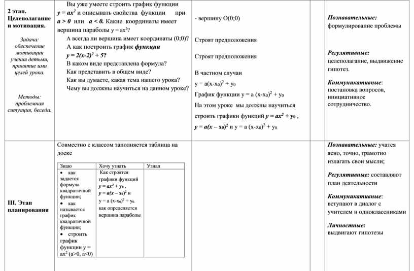 Регулятивные: целеполагание, выдвижение гипотез. Коммуникативные: постановка вопросов, инициативное сотрудничество.