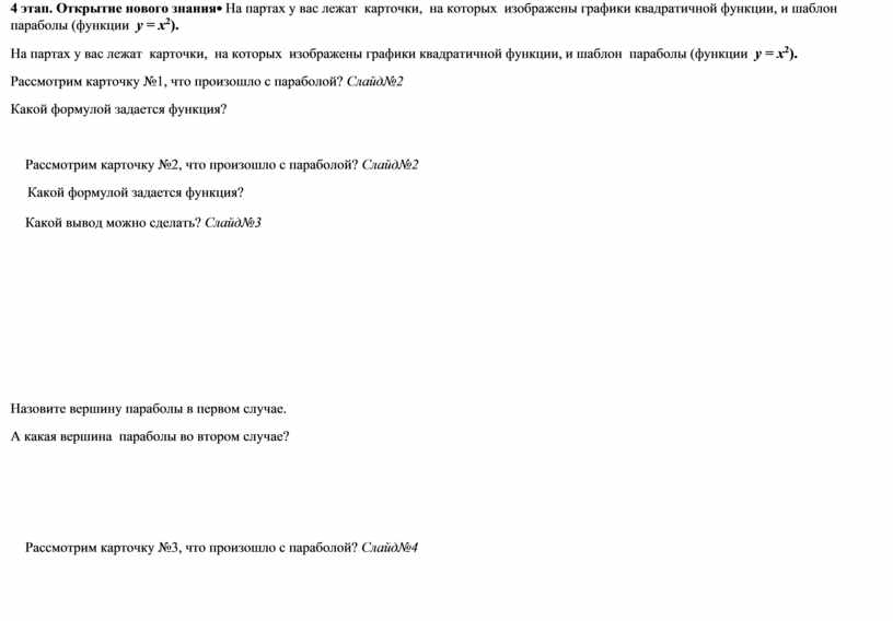 Рассмотрим карточку №3, что произошло с параболой? Слайд№4