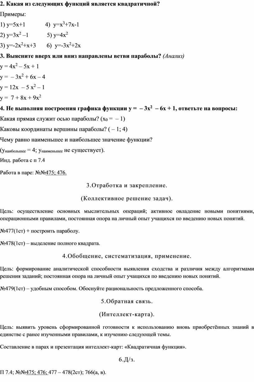 2) у=3х2 –1 5) у=4х2
