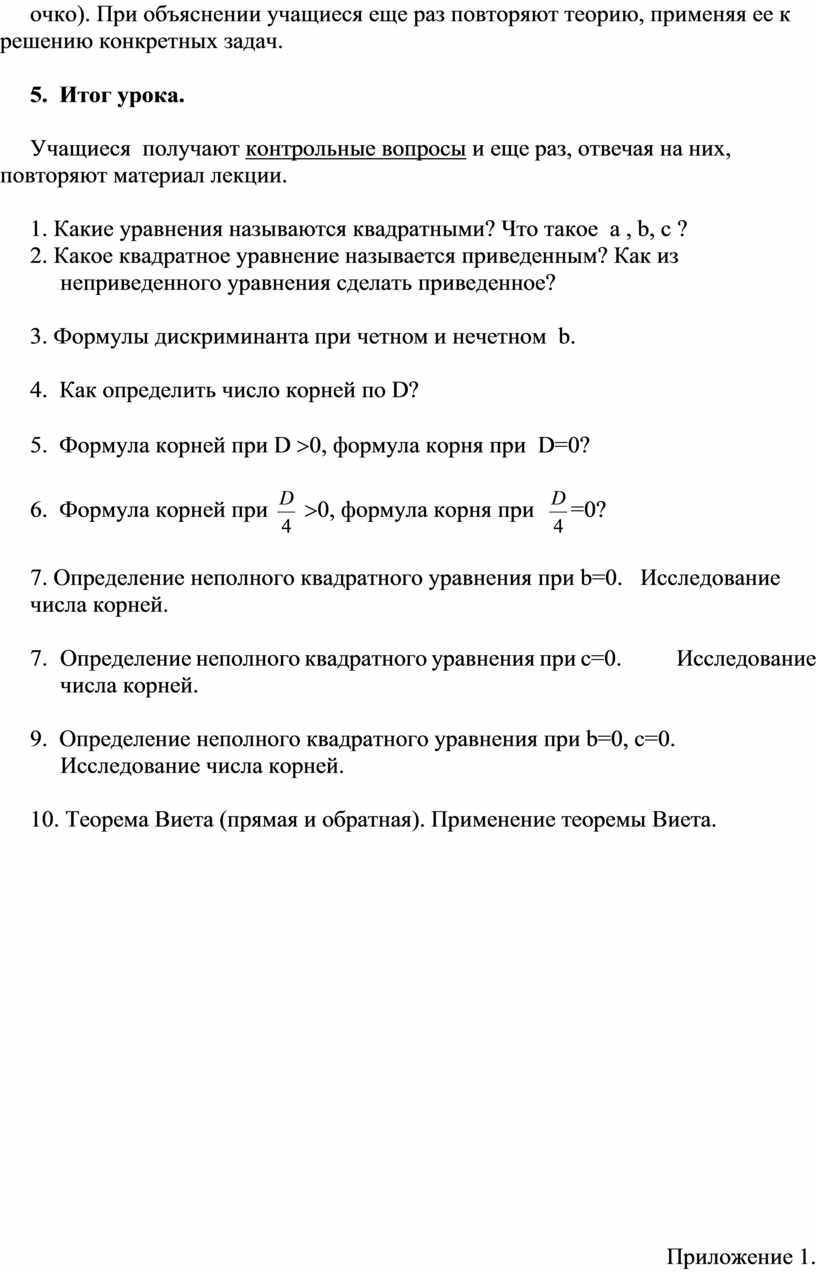 Перед объяснением нового материала учащимся раздаются краткие конспекты лекции (приложение 1).