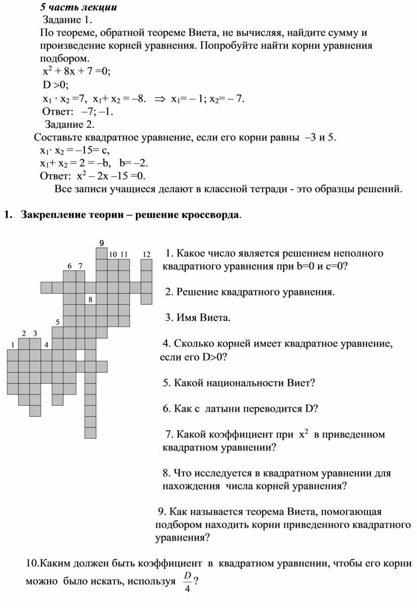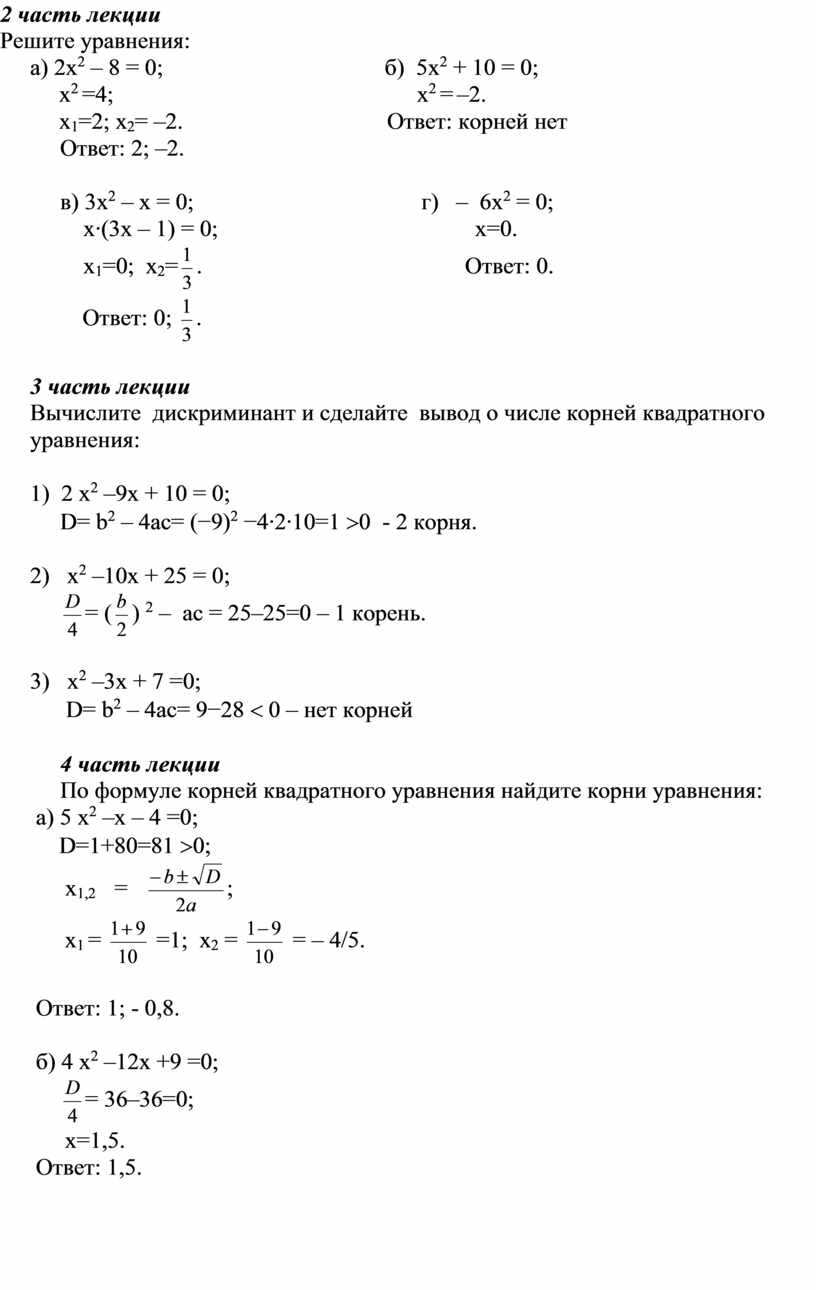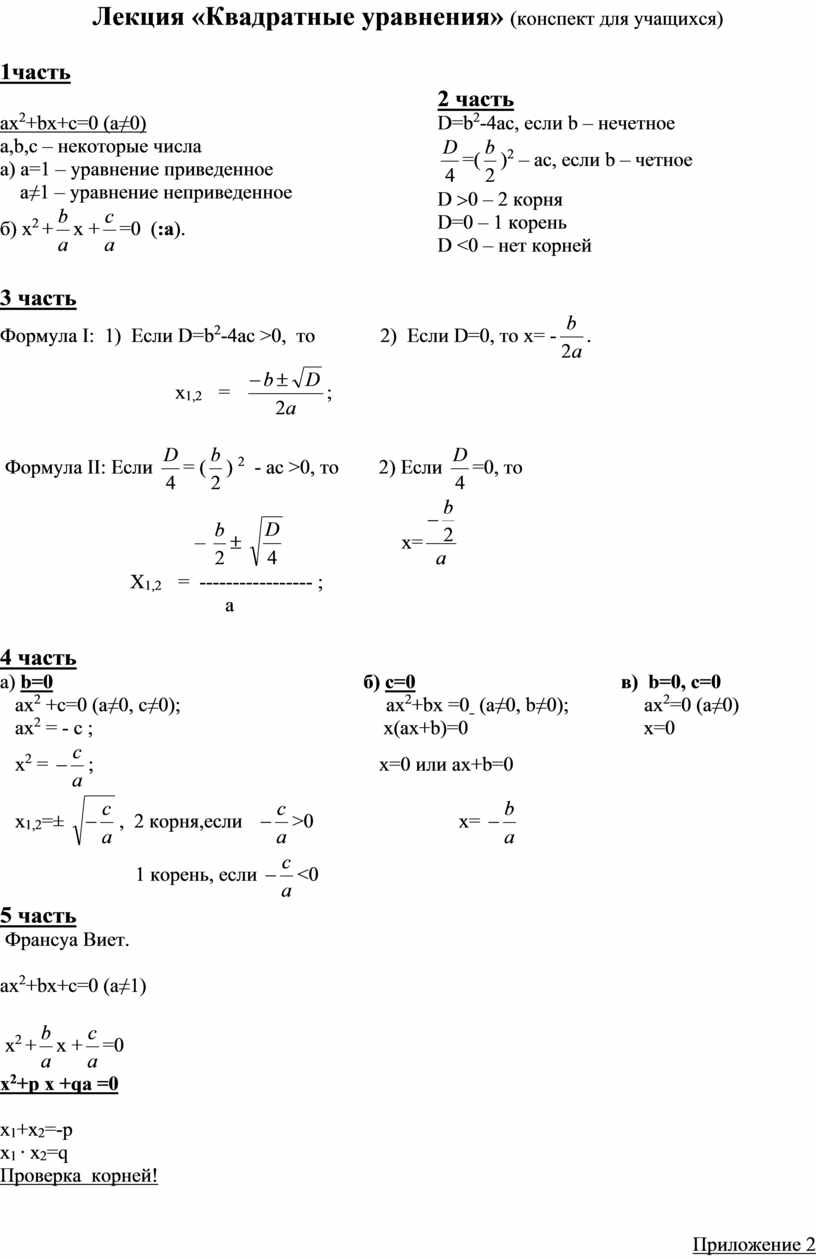 Лекция «Квадратные уравнения» (конспект для учащихся)