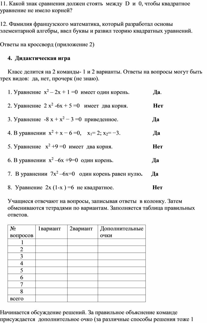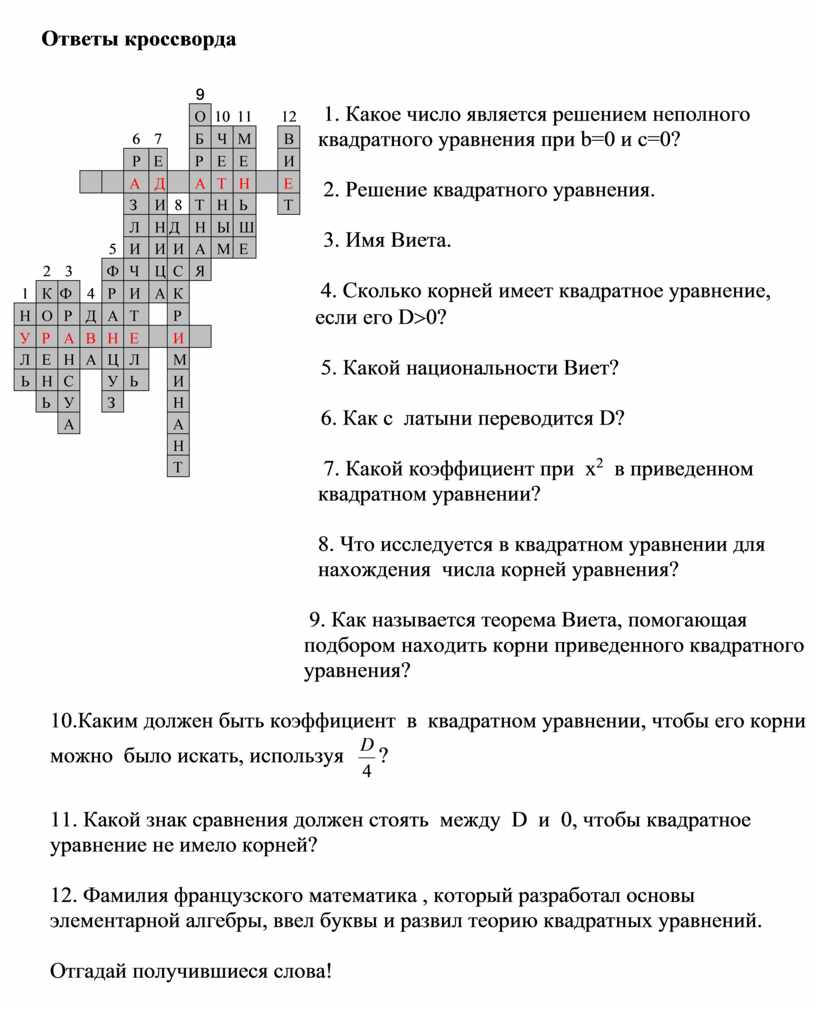 12. Фамилия французского математика , который разработал основы элементарной алгебры, ввел буквы и развил теорию квадратных уравнений.