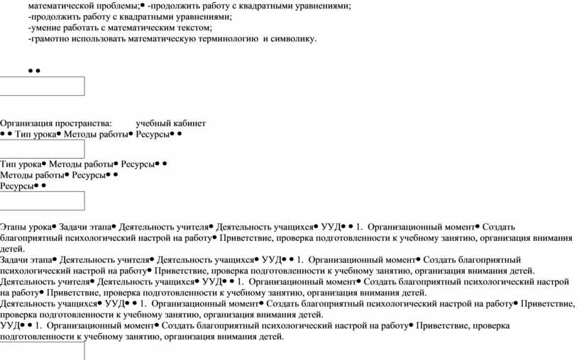 -продолжить работу с квадратными уравнениями; -умение работать с математическим текстом; -грамотно использовать математическую терминологию и символику.