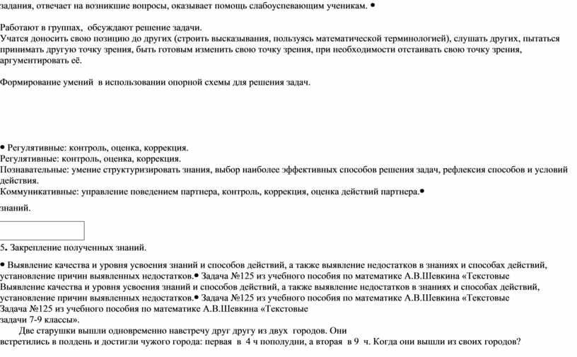 Регулятивные: целеполагание. Коммуникативные: постановка вопросов. Познавательные: самостоятельное выделение-формулирование познавательной цели; логические-формулирование проблемы. На данном этапе предлагаются задания, при решении которых используется ранее изученный материал. Выполняются универсальные логические действия: анализ, синтез. |