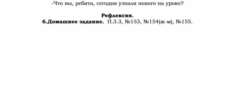 Рефлексия. 6.Домашнее задание. П.3.3, №153, №154(ж-м), №155.