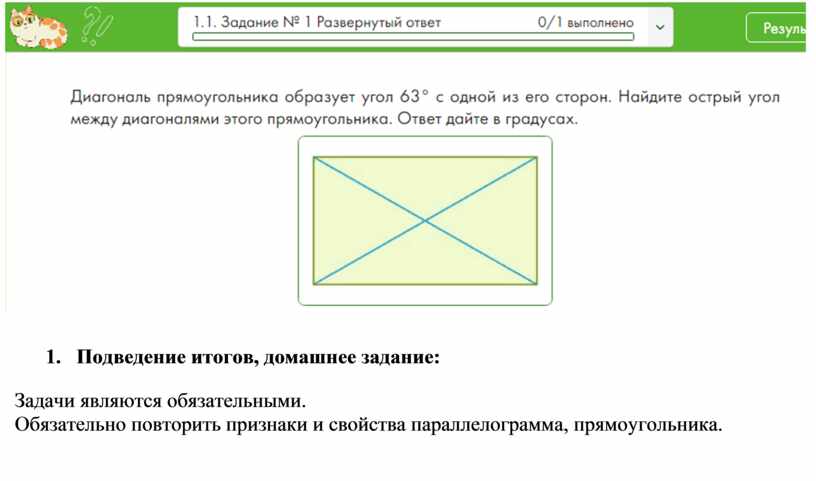 Обязательно повторить признаки и свойства параллелограмма, прямоугольника.