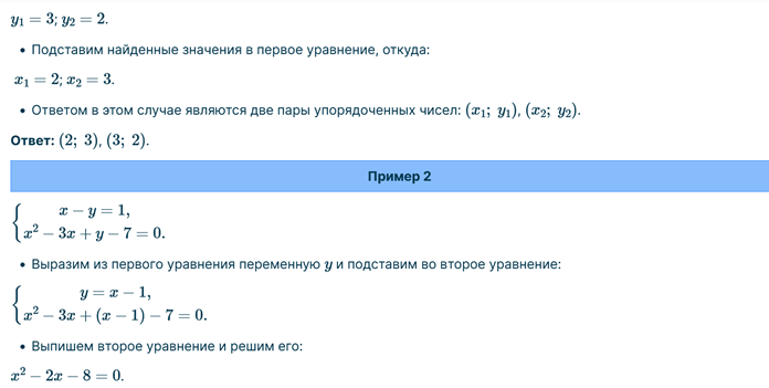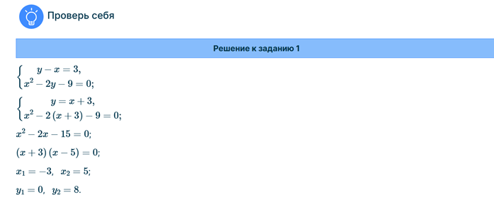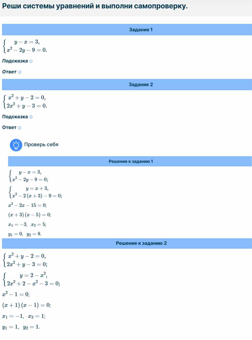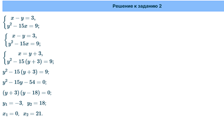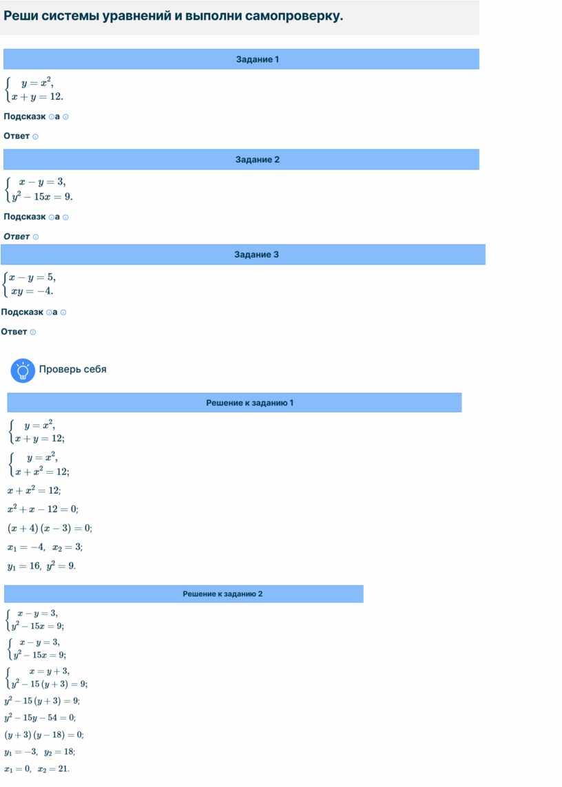 Тема: Решение систем двух уравнений, одно из которых линейное, а другое — второй степени.