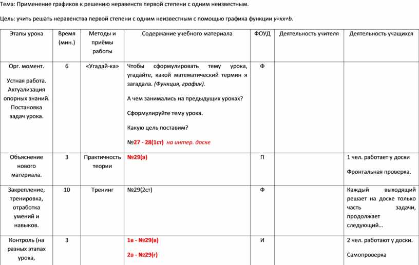 Тема: Применение графиков к решению неравенств первой степени с одним неизвестным.