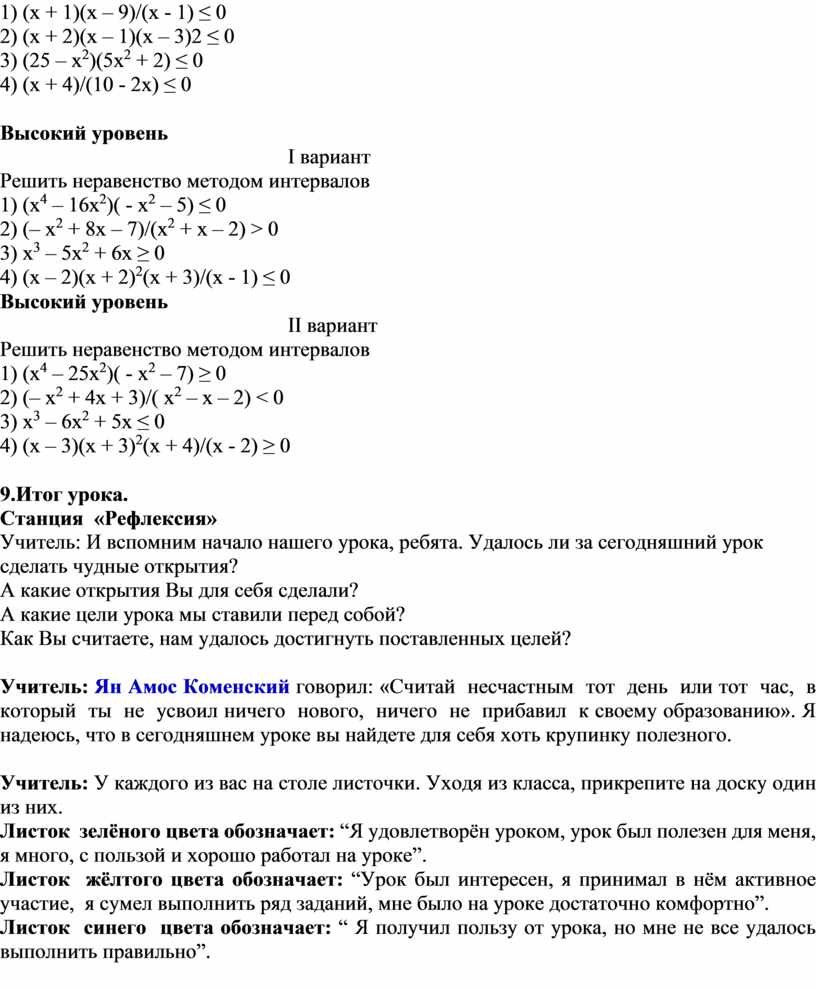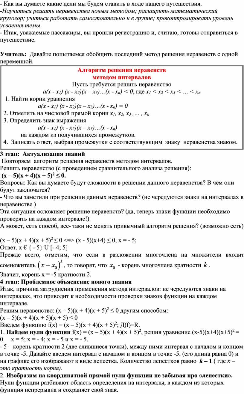 Учитель: Давайте попытаемся обобщить последний метод решения неравенств с одной переменной.