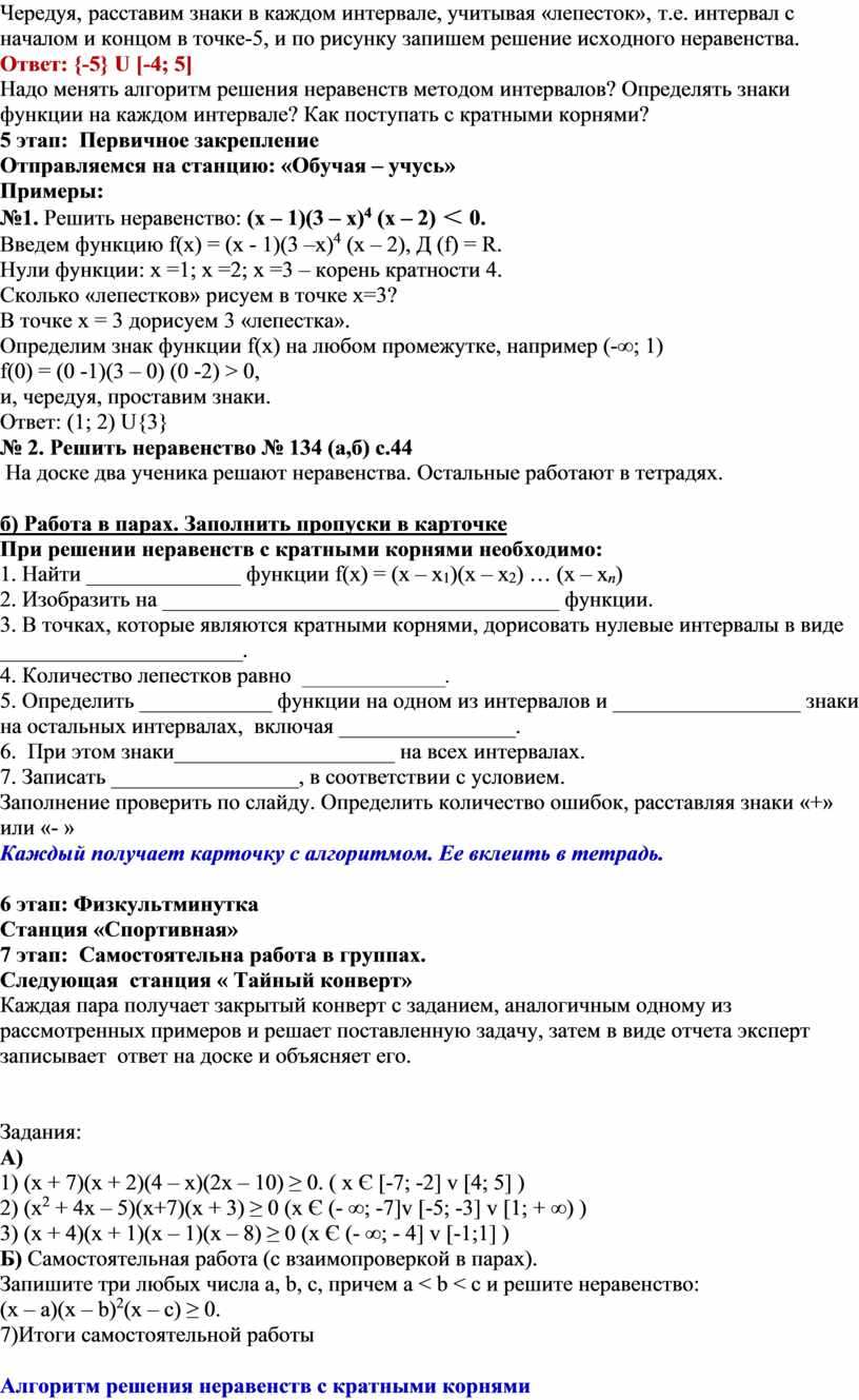 Алгоритм решения неравенств с кратными корнями