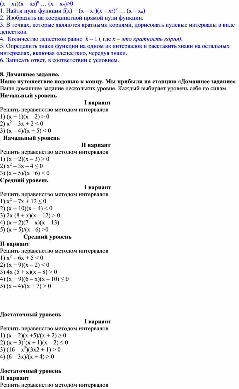 (х – х1)(х – х2)к … (х – хп)≥0