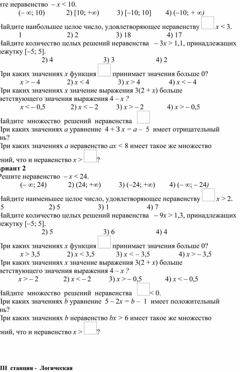 1. х > – 4 2) х < 4 3) х > 4 4) х < – 4