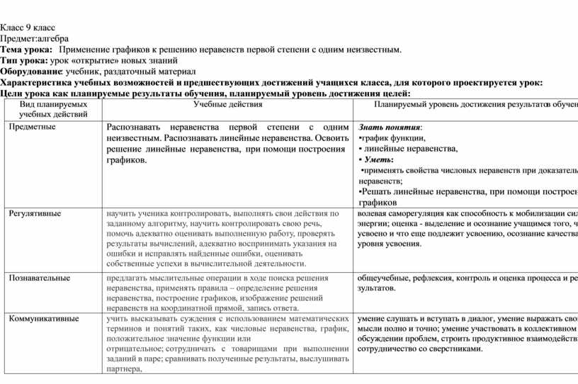 учить высказывать суждения с использованием математических терминов и понятий таких, как числовые неравенства, график, положительное значение функции или отрицательное; сотрудничать с товарищами при выполнении заданий в паре; сравнивать полученные результаты, выслушивать партнера, |