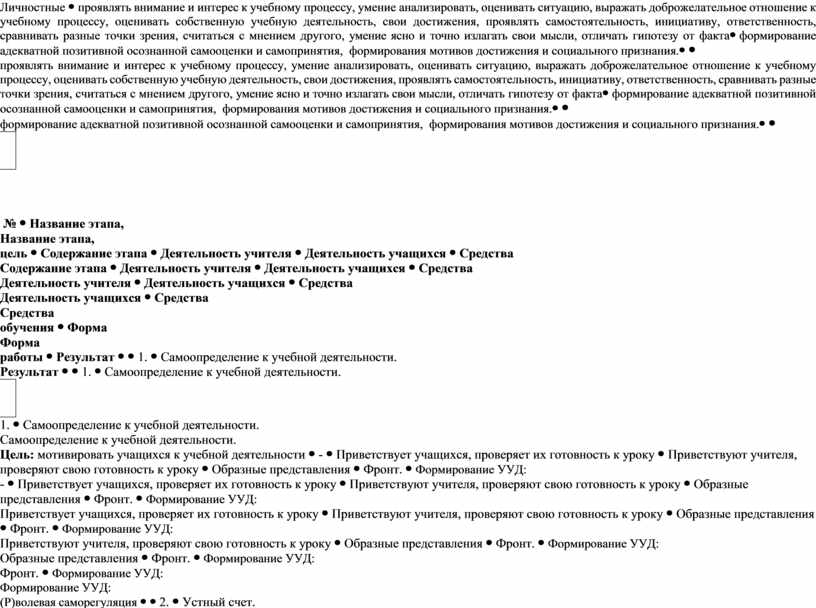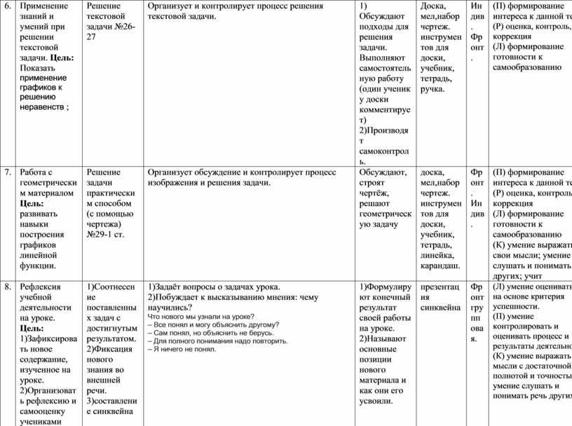 (П) формирование интереса к данной теме (Р) оценка, контроль, коррекция (Л) формирование готовности к самообразованию (К) умение выражать свои мысли; умение слушать и понимать речь других; учит |
