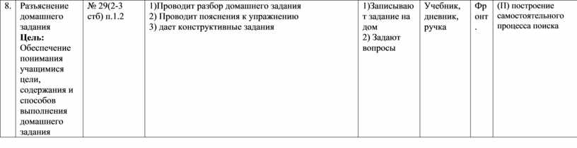 Разъяснение домашнего задания Цель: Обеспечение понимания учащимися цели, содержания и способов выполнения домашнего задания |