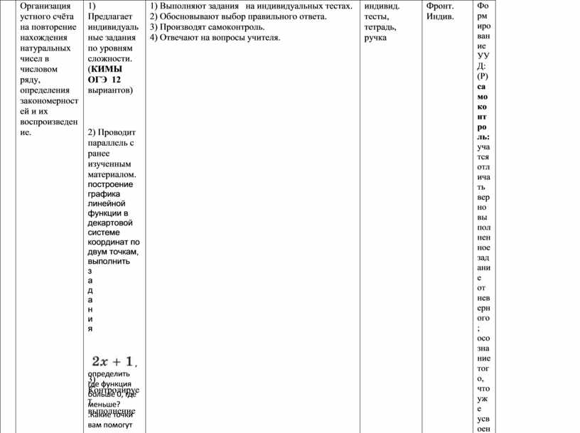 1) Выполняют задания на индивидуальных тестах. 2) Обосновывают выбор правильного ответа. 3) Производят самоконтроль. 4) Отвечают на вопросы учителя. |