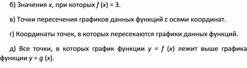 д) Все точки, в которых график функции у = f (x) лежит ниже графика функции у = g (x).