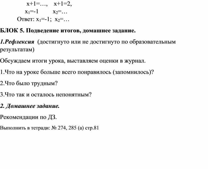 1.Рефлексия (достигнуто или не достигнуто по образовательным результатам)