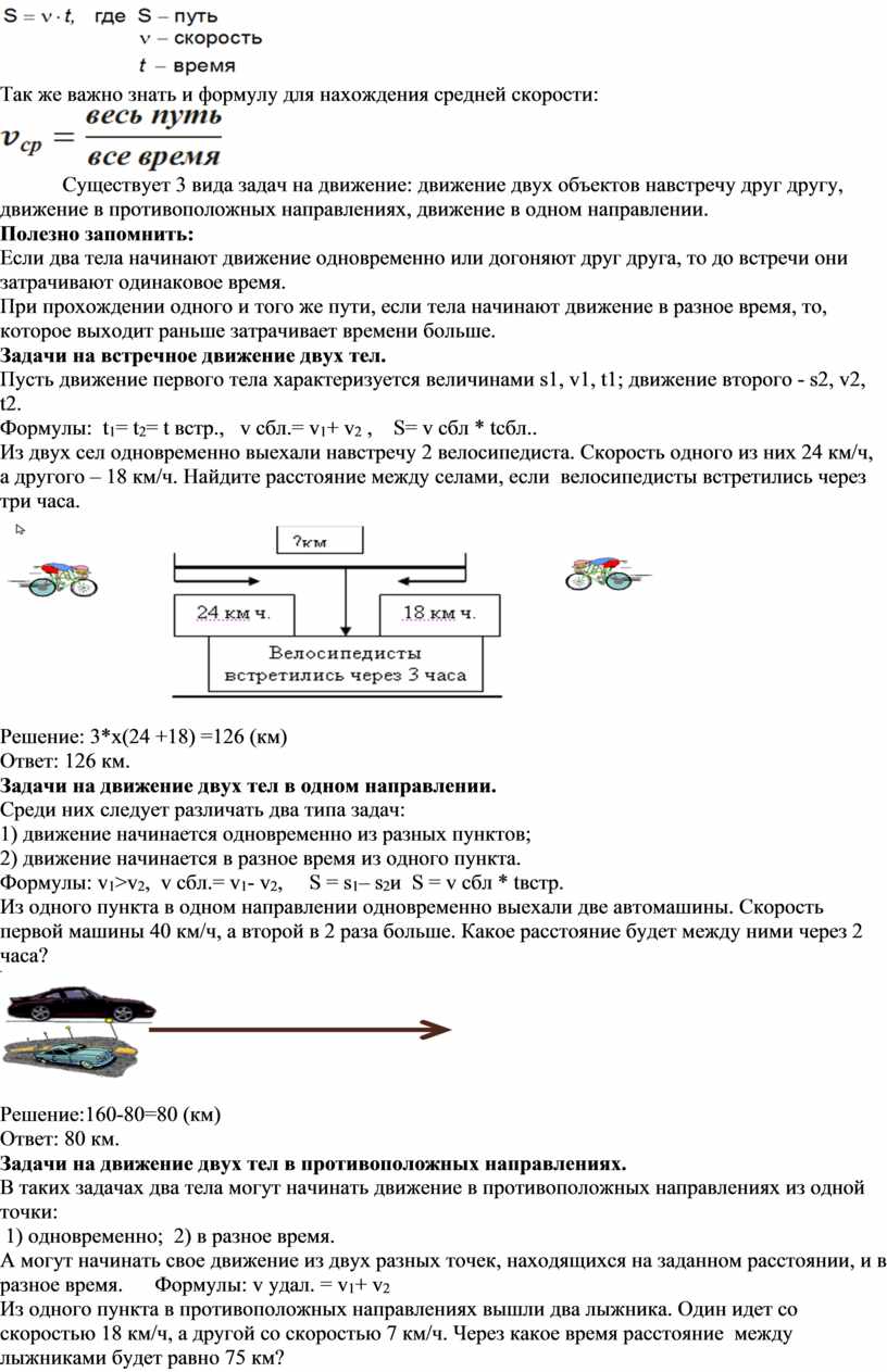 Существует 3 вида задач на движение: движение двух объектов навстречу друг другу, движение в противоположных направлениях, движение в одном направлении.