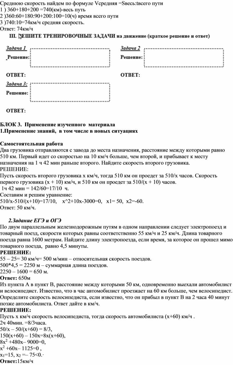 РЕШИТЕ ТРЕНИРОВОЧНЫЕ ЗАДАЧИ на движение (краткое решение и ответ)