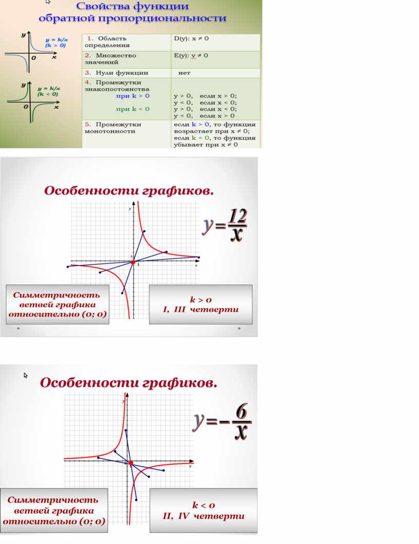 Предметные: развитие умения строить графики обратной пропорциональности;формирование умения исследовать обратную пропорциональность y=k/х