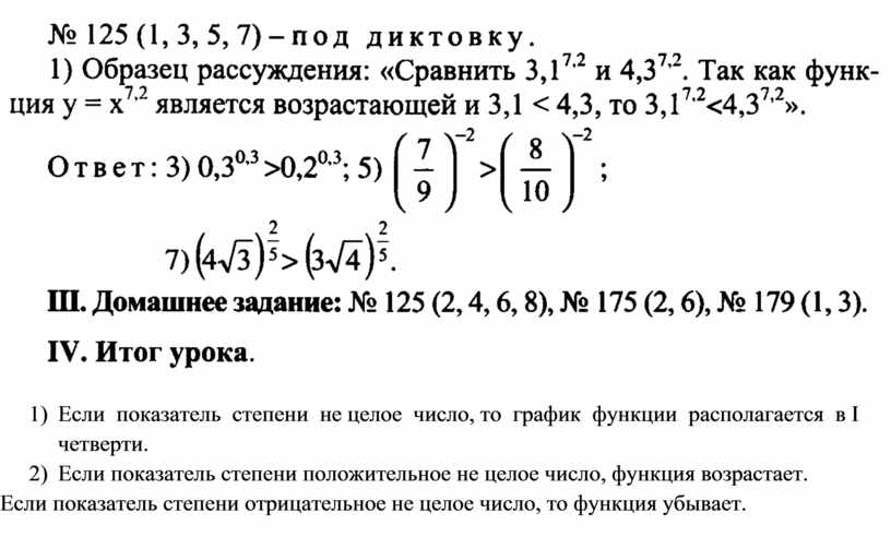 1) Если показатель степени не целое число, то график функции располагается в I четверти.