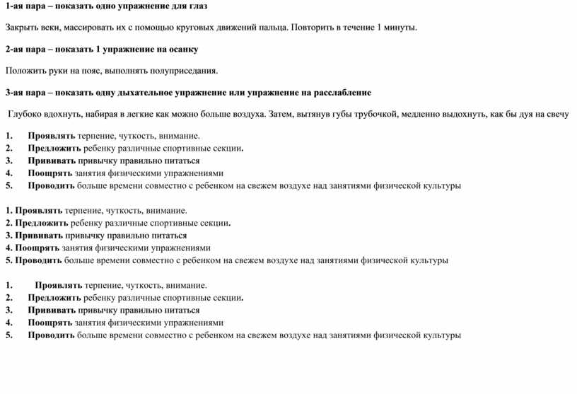 1-ая пара – показать одно упражнение для глаз