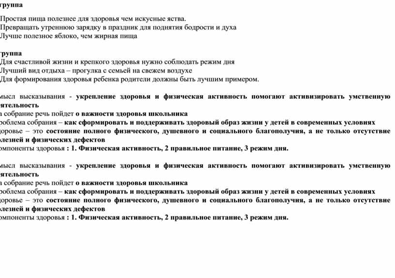 Проблема собрания – как сформировать и поддерживать здоровый образ жизни у детей в современных условиях