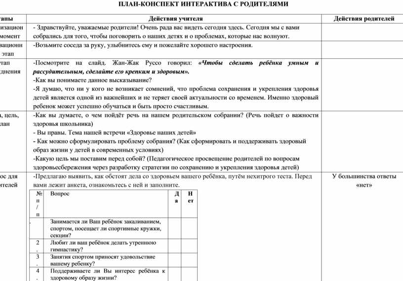 ПЛАН-КОНСПЕКТ ИНТЕРАКТИВА С РОДИТЕЛЯМИ
