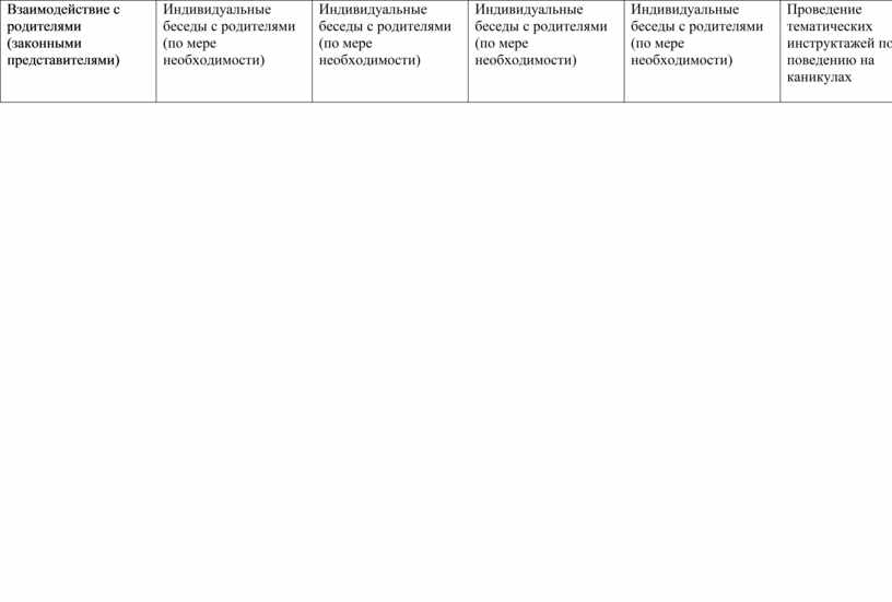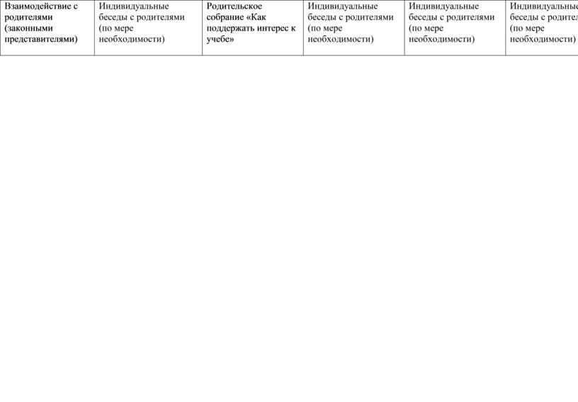 Взаимодействие с родителями (законными представителями) |