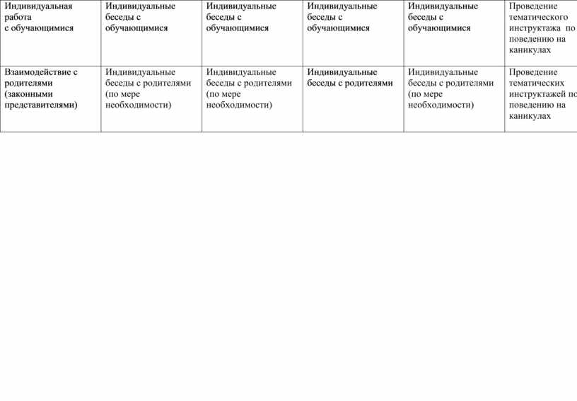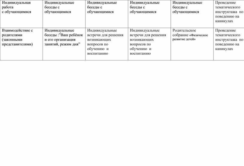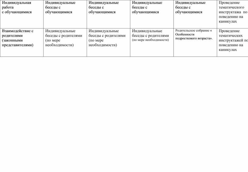 Индивидуальные встречи для решения возникающих вопросов по обучению и воспитанию