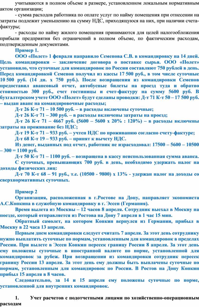 1. Бухгалтерский учет расчетов с подотчетными лицами по служебным командировкам