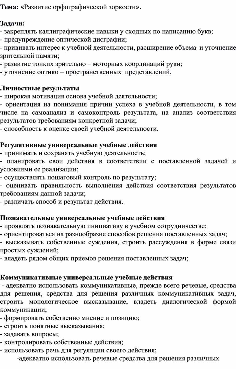 Тема: «Развитие орфографической зоркости».