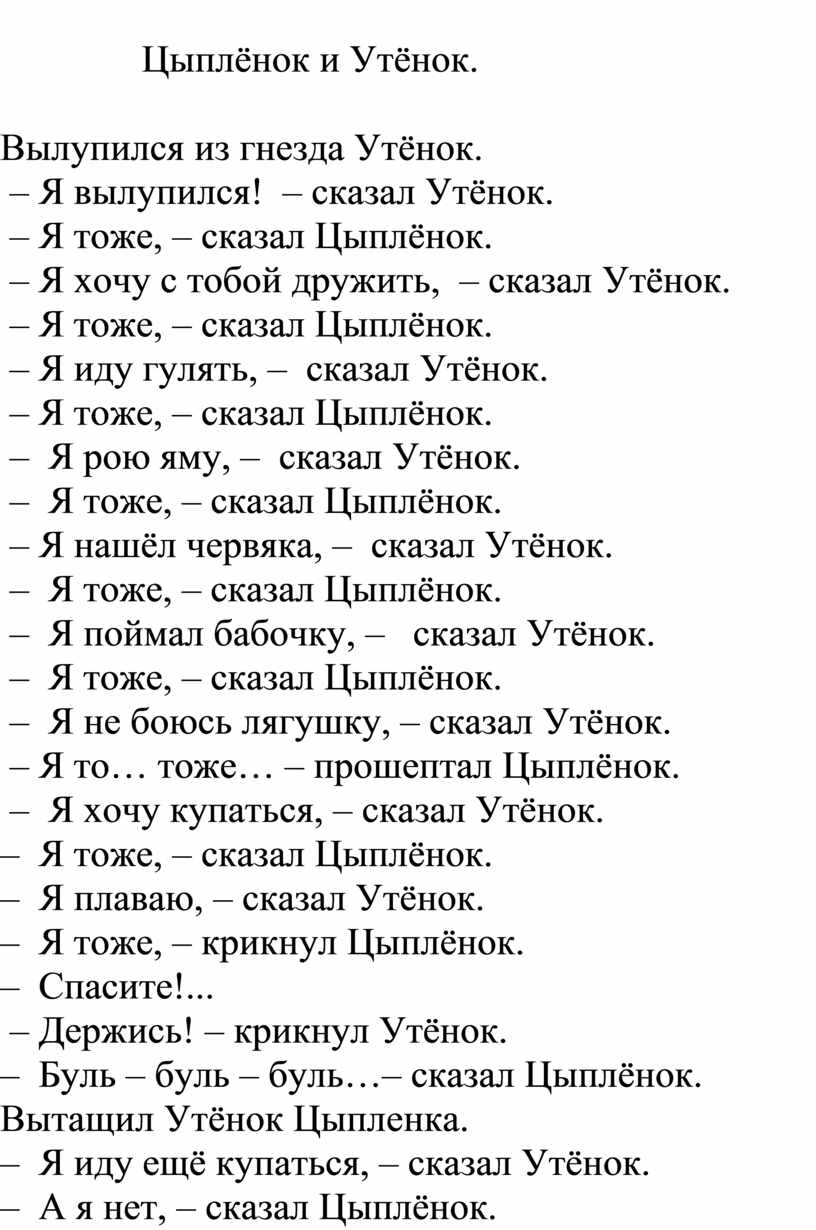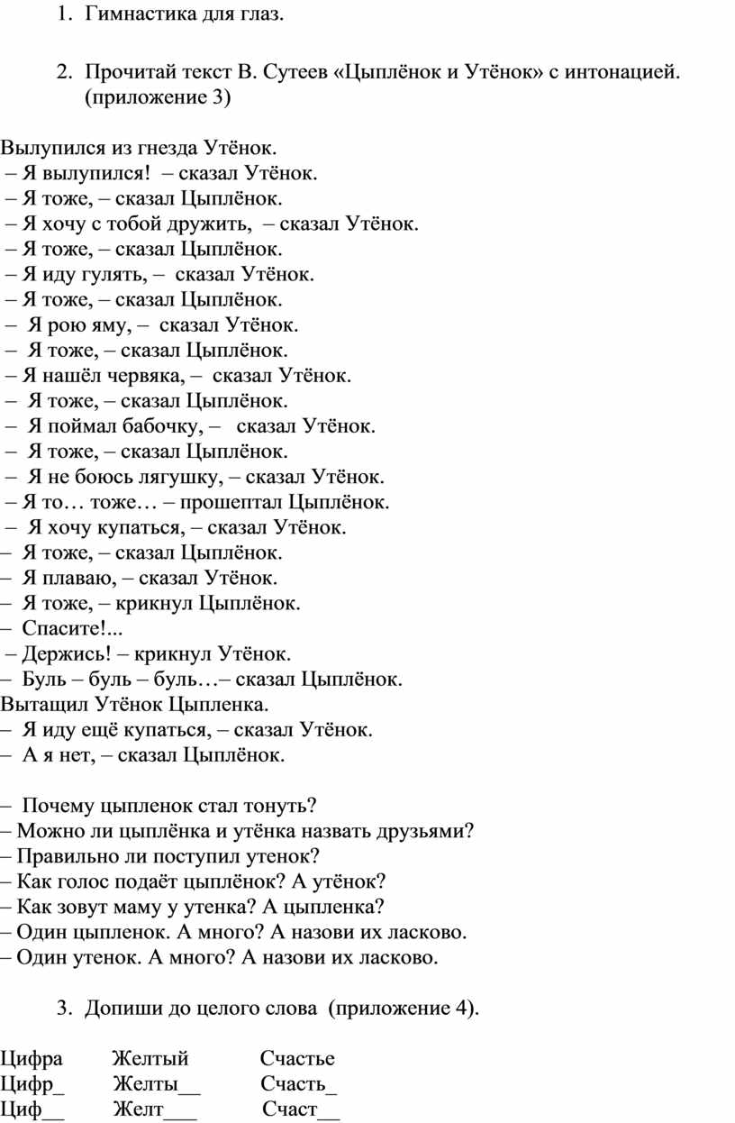 5. Прочитай текст В. Сутеев «Цыплёнок и Утёнок» с интонацией. (приложение 3)