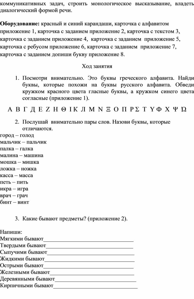 Оборудование: красный и синий карандаши, карточка с алфавитом приложение 1, карточка с заданием приложение 2, карточка с текстом 3, карточка с заданием приложение 4, карточка с заданием приложение 5, карточка с ребусом приложение 6, карточка с заданием приложение 7, карточка с заданием допиши букву приложение 8.