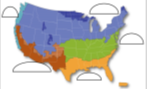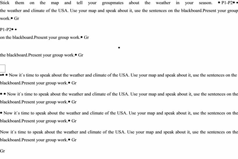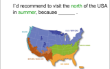You have the map of the USA and the weather icons. Stick them on the map and tell your groupmates about the weather in your season. |
